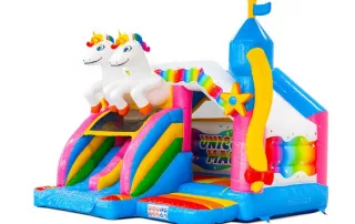 Envolez-vous au pays des licornes et plongez dans un univers féerique ! Ce château gonflable unique combine une aire de saut et deux toboggans pour multiplier les possibilités de jeu. Les enfants peuvent grimper, rebondir et glisser sans fin, pour des heures d’amusement magique. Un incontournable pour émerveiller petits et grands lors de vos événements !
