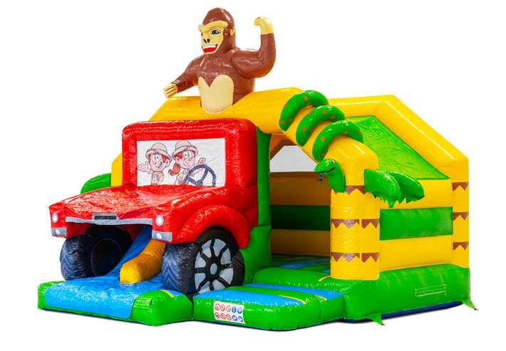 Offre une aventure dépaysante avec le château gonflable Double Combo Toboggan Safari Gorille. Cette structure associe une grande aire de saut et un toboggan intégré pour une animation dynamique et variée.